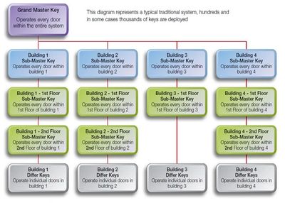 Even with a master keyed system, working out who has master, submaster or standard access keys is an administrative nightmare. Every key needs to be logged and documented. If one gets lost or stolen then you need to consider replacing multiple (or all) lock cylinders and distribute new keys.